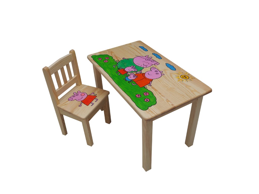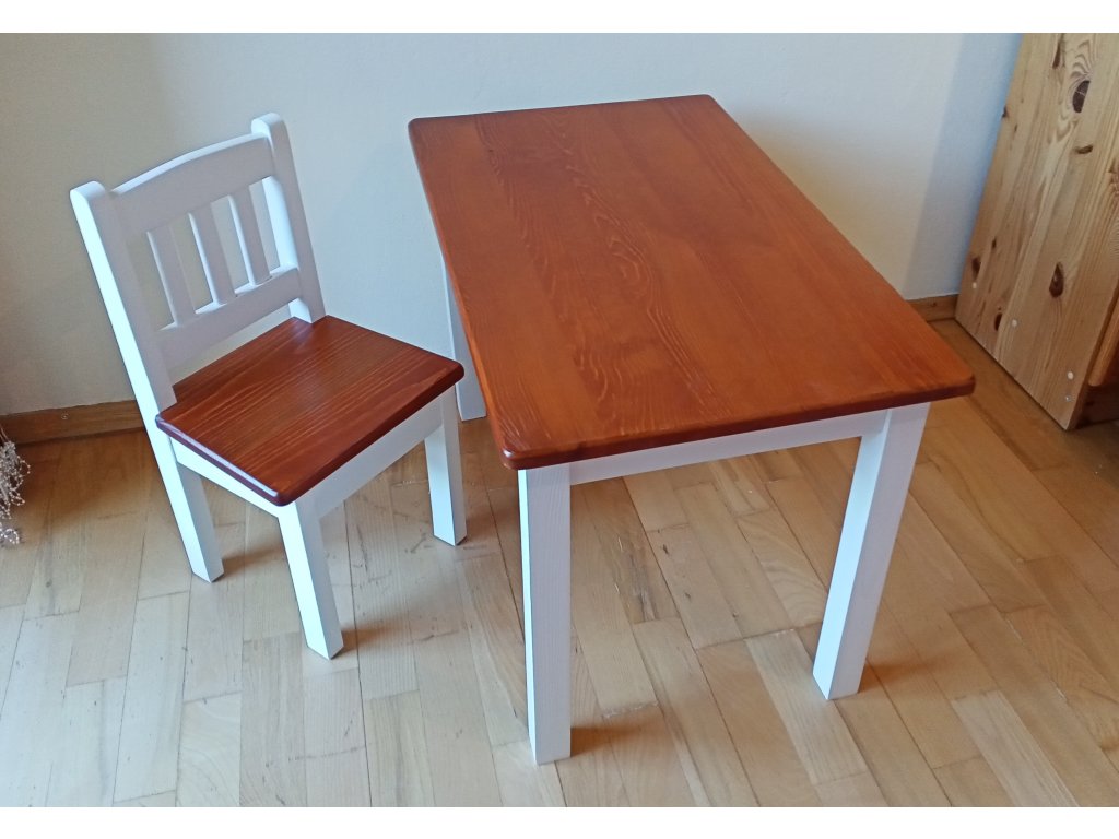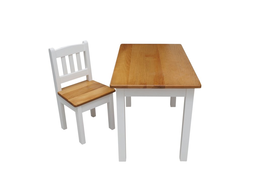 Stôl je pevný stabilný a spĺňa všetko čo je potreba ohľadom detskej bezpečnosti. Možno objednať v rôznych farbách: borovice, dub, jelša, orech, biela aj ručne maľovaný obrázok. Borovicový nábytok je prírodný, vydrží dlhé roky a nikdy nevyjde z módy.
